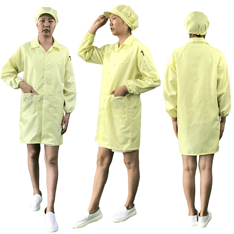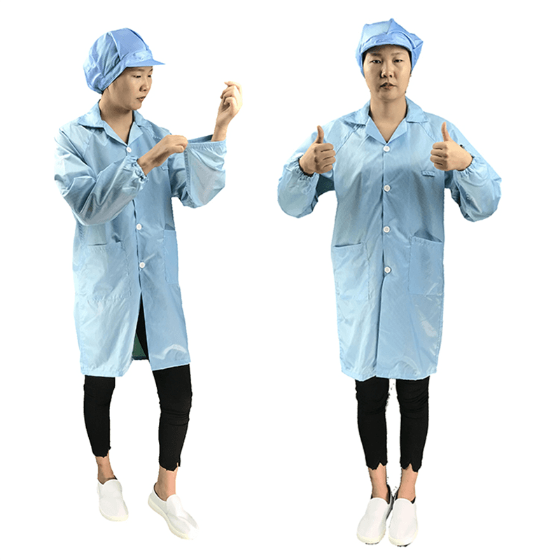 ESD -beskyttelsesklær (også kjent som ESD Laboratory Protective Clothing) er spesialdesignet for å beskytte sensitivt elektronisk utstyr mot elektrostatisk utladning. Elektrostatisk utladning (ESD) kan forårsake alvorlig skade på elektroniske produkter, forårsake kretsfeil eller utstyrssvikt. Våre beskyttende klær bruker svært ledende materialer som effektivt kan beskytte statisk elektrisitet og sikre sikkerheten til elektroniske enheter under håndtering. Denne beskyttelsen er spesielt viktig for laboratorier og fabrikker av elektroniske produkter, samt reparasjonsbutikker for mobiltelefoner som må opprettholde sensitivt utstyr.