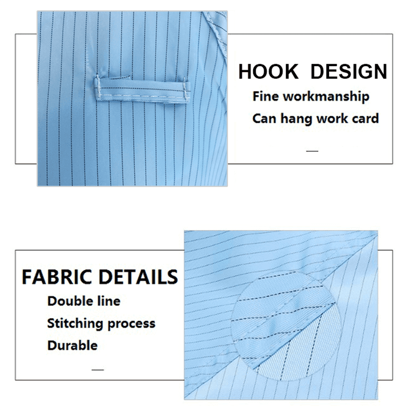 Når det gjelder design, er vi spesielt oppmerksom på komfort og holdbarhet. ESD-jakken og buksene er laget av høykvalitetsstoffer og er behagelige å ha på seg, og gir god komfort selv i lang arbeidstid. Samtidig sikrer slitestyrken og styrken til stoffet langsiktig bruk av plagget og er egnet for forskjellige arbeidsmiljøer.