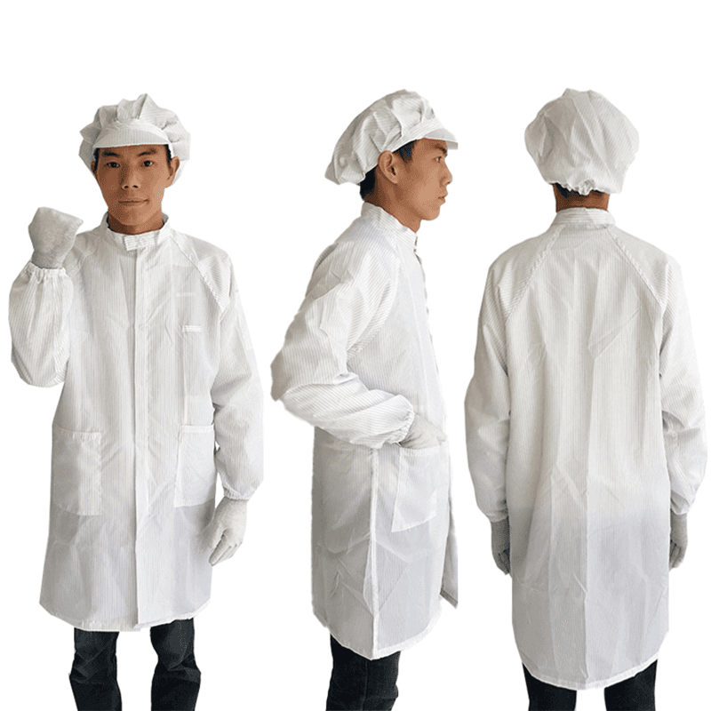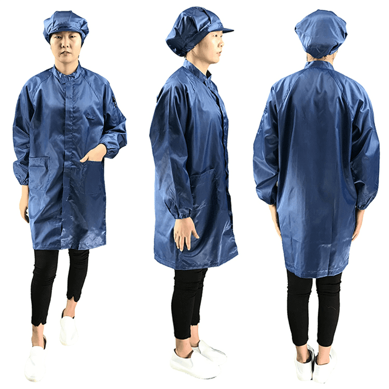 ESD-coveralls har avanserte antistatiske materialer og design som skaper en effektiv Faraday-burseffekt rundt brukerens armer og overkropp. Denne effekten kan effektivt beskytte elektrostatiske felt og forhindre virkningen av statisk elektrisitet på sensitivt utstyr som hovedkort, grafikkbrikker og andre elektriske komponenter. Denne typen elektrostatisk skjermingsbeskyttelse sikrer at utstyret ikke blir skadet av elektrostatisk utslipp under drift, og dermed forbedrer utstyrets pålitelighet og stabilitet.