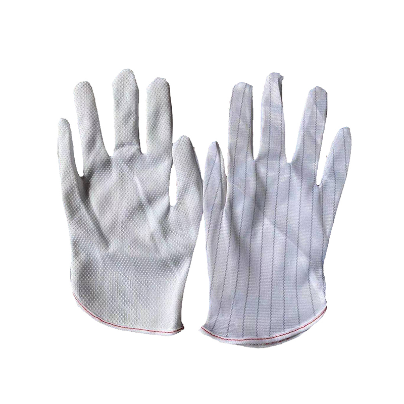 Antistatiske pregede hansker er spesialdesignet for elektronikkindustrien og presisjonsproduksjonsmiljøene. Baksiden av hånden er laget av polyesterfiber av høy kvalitet. Dette materialet har gode antistatiske egenskaper og kan effektivt forhindre skade på elektroniske komponenter forårsaket av statisk elektrisitet fra menneskekroppen. Statisk utslipp kan føre til at elektroniske produkter ikke fungerer eller til og med blir skadet, og hansker kan sikre at statisk elektrisitet effektivt kontrolleres under drift for å sikre produktets sikkerhet og stabilitet.