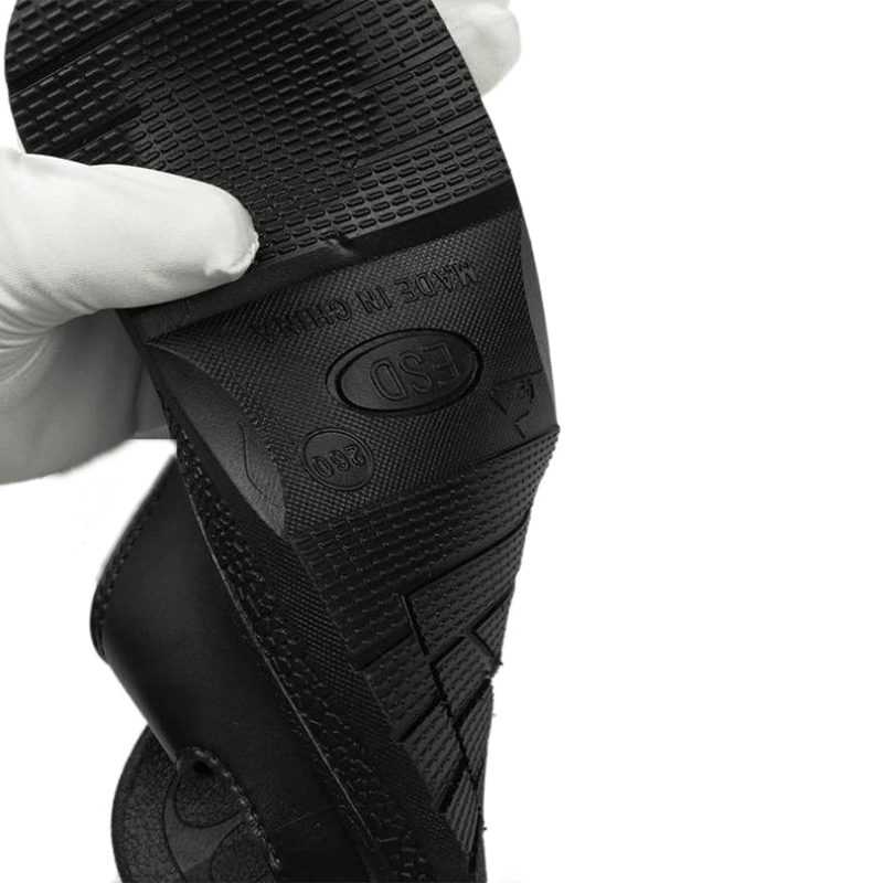 Antistatiske tøfler er hovedsakelig laget av SPU-materiale, som har utmerket antistatisk ytelse. SPU (super polyuretan) materiale har god konduktivitet og kan effektivt lede statisk ladning fra menneskekroppen til bakken for å forhindre statisk akkumulering av elektrisitet. Denne funksjonen er spesielt viktig for arbeidsmiljøer som er ekstremt følsomme for statisk elektrisitet, for eksempel elektroniske verksteder og rene rom. Det kan effektivt beskytte elektronisk utstyr og sensitive enheter og unngå skader og feil forårsaket av elektrostatisk utslipp.