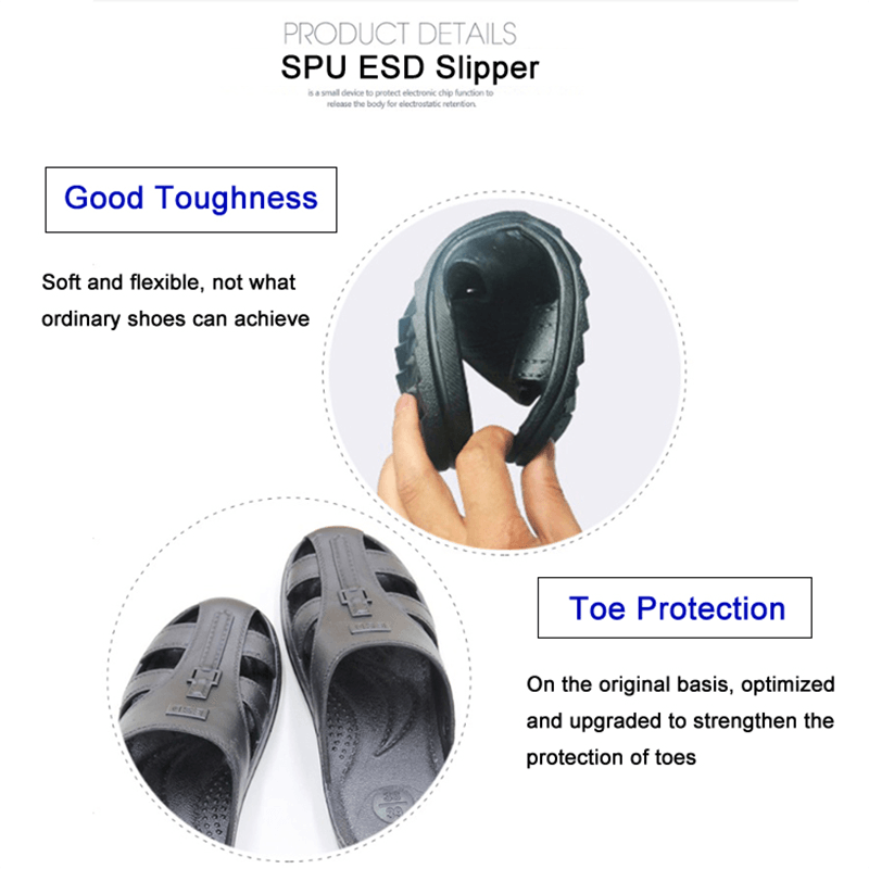 I arbeidsmiljøer som produksjon av elektronisk utstyr, montering og vedlikehold, kan elektrostatisk utslipp (ESD) forårsake alvorlig skade på sensitive enheter som elektroniske komponenter og kretskort. Antistatiske ESD-tøfler er designet for å forhindre generering og frigjøring av statisk elektrisitet fra menneskekroppen, og trygt direkte statisk elektrisitet til bakken, og dermed unngå den potensielle trusselen om statisk elektrisitet til elektronisk utstyr. Dette beskyttende tiltaket kan effektivt beskytte elektroniske komponenter med høy verdi og redusere skader på utstyret og produksjonsavbrudd forårsaket av elektrostatisk utladning.