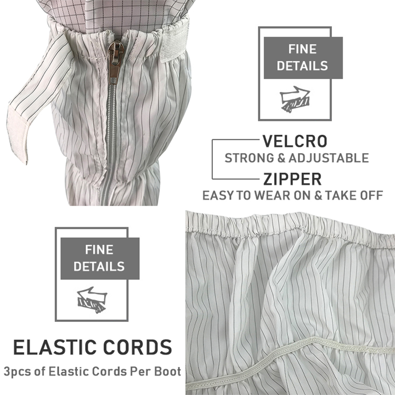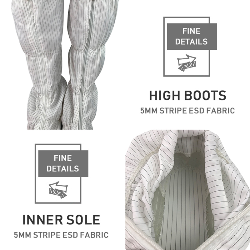 Siden etableringen i 2005 har Suzhou Jujie Electron Co., Ltd. blitt forpliktet til forskning og utvikling, produksjon og salg av reneom og antistatiske produkter. Våre antistatiske støvler fra Cleanroom er nøye designet for å imøtekomme behovene til moderne høyteknologiske miljøer for antistatisk beskyttelse. Følgende er de viktigste produktfordelene med våre antistatiske støvler i renrommet: