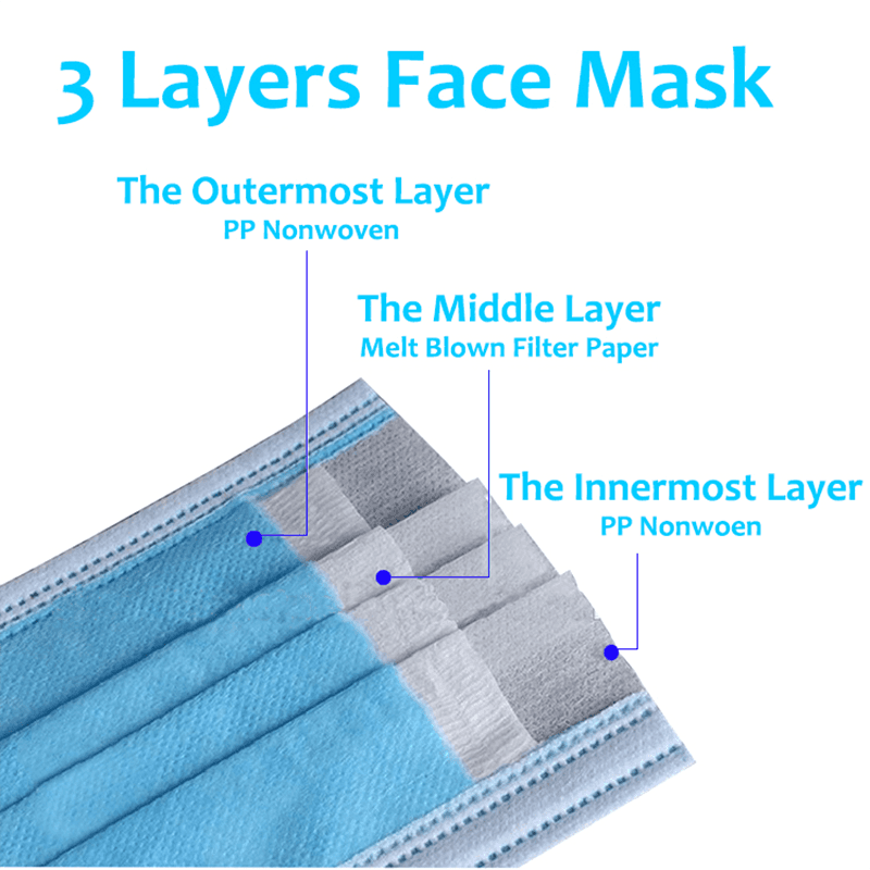 Våre ikke-vevde masker er laget av mer enn tre lag med ikke-vevde stoffer, og hvert lag er strengt screenet og behandlet for å sikre maskene med høy effektivitet og komforten til maskene. Det indre laget er mykt og hudvennlig, mellomlaget er svært effektivt, og det ytre laget er vanntett og pustende. Denne flerlagsdesignen kan ikke bare effektivt filtrere partikler og dråper i luften, men også opprettholde pusteevne og komfort når det brukes i lang tid.