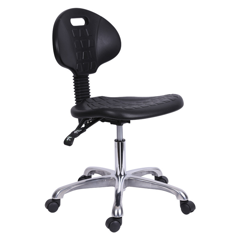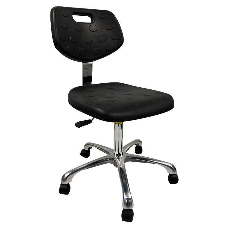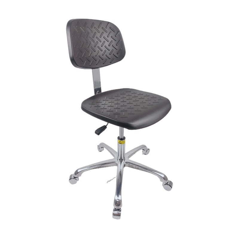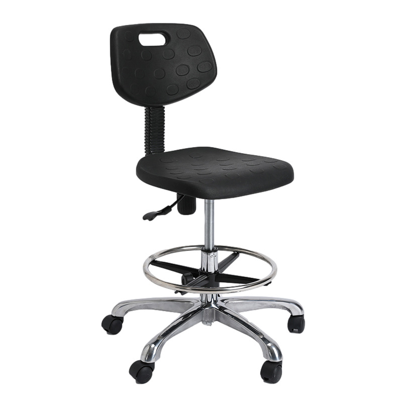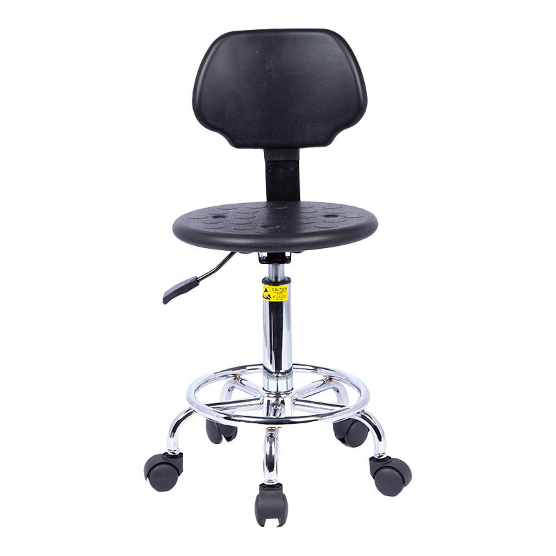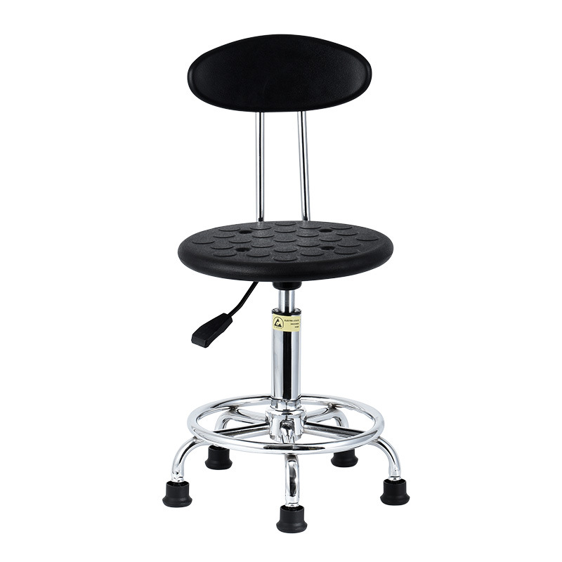 Antistatiske stoler er viktig utstyr i statisk følsomme områder og er mye brukt i bransjer som elektronikkproduksjon, halvledere, legemidler og presisjonsinstrumenter. Våre antistatiske stoler er laget av høykvalitets PP-injeksjonsstøpematerialer, kombinert med antistatisk PU/PVC-lær og PU-skum, noe som sikrer høy styrke, høy hardhet og overlegen slitemotstand og korrosjonsmotstand. Overflatemotstandsverdien til materialet på overflaten av stolen er mellom 10 og 10^11 ohm, som effektivt kan forhindre statisk akkumulering av elektrisitet.