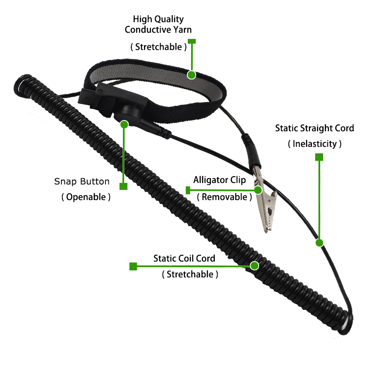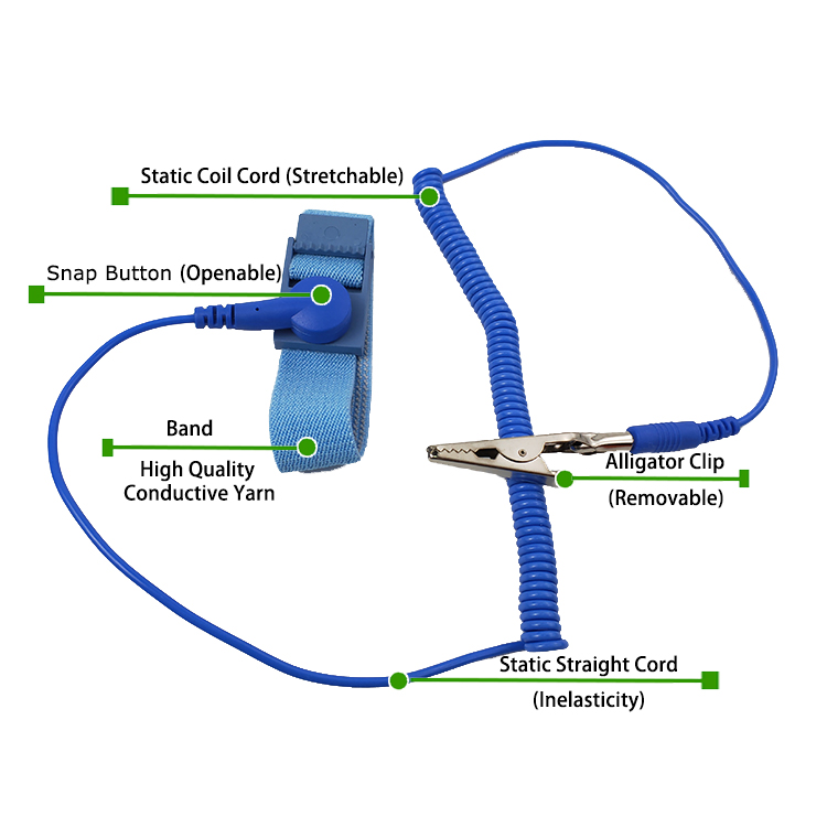 Kablet antistatisk håndleddsstropp Eksporter effektivt statisk elektrisitet til jorden gjennom håndleddet og jordingstråden for å forhindre at statisk elektrisitet skader sensitive elektroniske komponenter. Denne prosessen sikrer sikkerhet og pålitelighet gjennom stabil motstand.